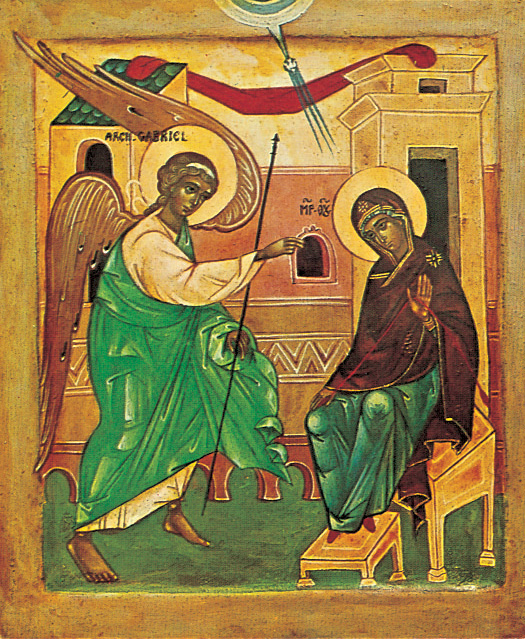 Today did Gabriel, who stands by God, come to the pure virgin, bearing to her the glad annunciation, “Hail, thou that art highly favored! And she cast in her mind what manner of salutation this might be. And the angel immediately proceeded to say, The Lord is with thee: fear not, Mary; for thou hast found favor with God. Behold, thou shalt conceive in thy womb, and bring forth a son, and shalt call His name Jesus. He shall be great, and shall be called the Son of the Highest; and the Lord God shall give unto Him the throne of His father David, and He shall reign over the house of Jacob for ever: and of His kingdom there shall be no end.