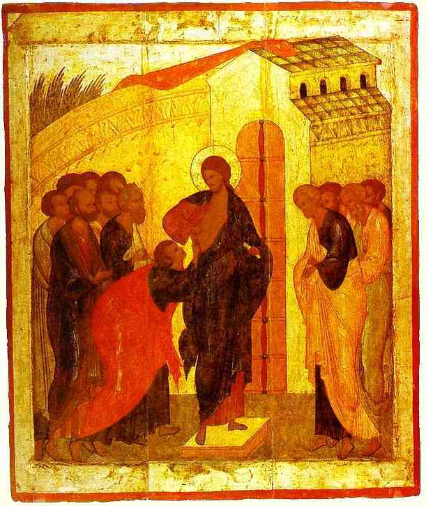 From the crisis of the doubt he felt as the left-out one, the “odd man out” who had not seen the Risen Christ, and who had missed out on receiving The Gift of the Holy Spirit in the breath of Jesus a week before, Thomas became the first to shout forth the testimony of the very reality, incomprehensible as it may be to our human minds, which is the foundation of the Orthodox Christian Faith: Jesus Christ Is God and Man, Transcendent and human, Unknowable yet Personal, Beyond Our Conception but Closer than Our Next Breath. Lord, human master, and Creator, at one-and-the-same time. Another of the Vespers hymns calls out,